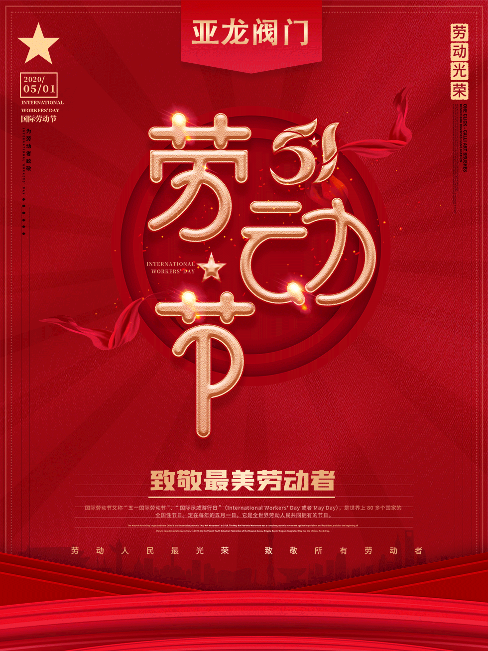 一年一度的五一小長假將至,在這里永嘉縣亞龍閥門制造有限公司全體員工向您及您的家人送出最真摯的祝福,提前祝大家勞動節快樂!