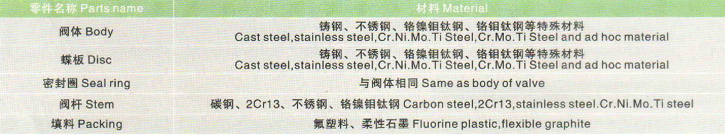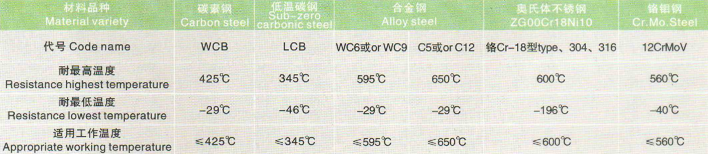 蝶閥密封材料選用和適用溫度: